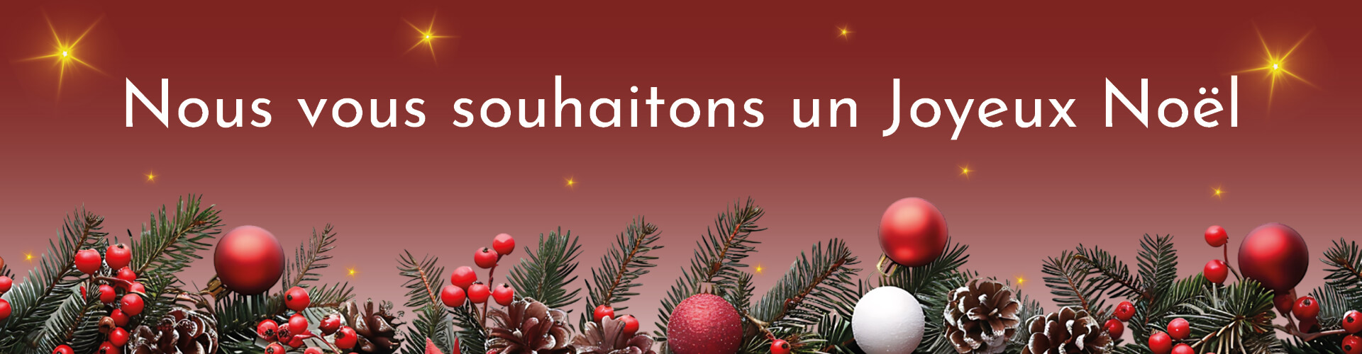 Notre équipe sera absente du 24/12/24 à 12h au 05/01/26 à 9h. Les commandes et les messages passés durant cette période seront traités à notre retour. Merci de votre compréhension.