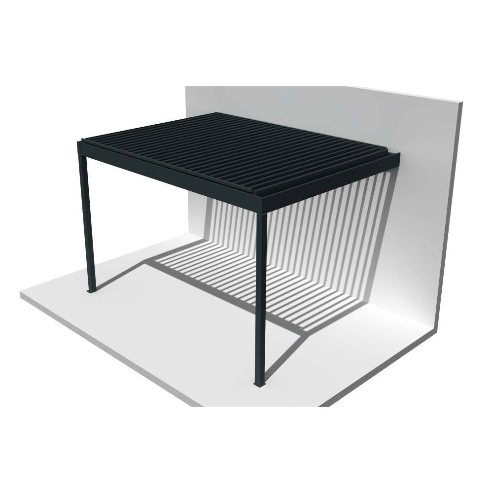 Les lames orientables de cette grande pergola vous permettent de contrôler facilement la quantité de lumière et d'air qui pénètre sous son toit. De plus, une fois fermées, les lames protègent des intempéries et des UV.