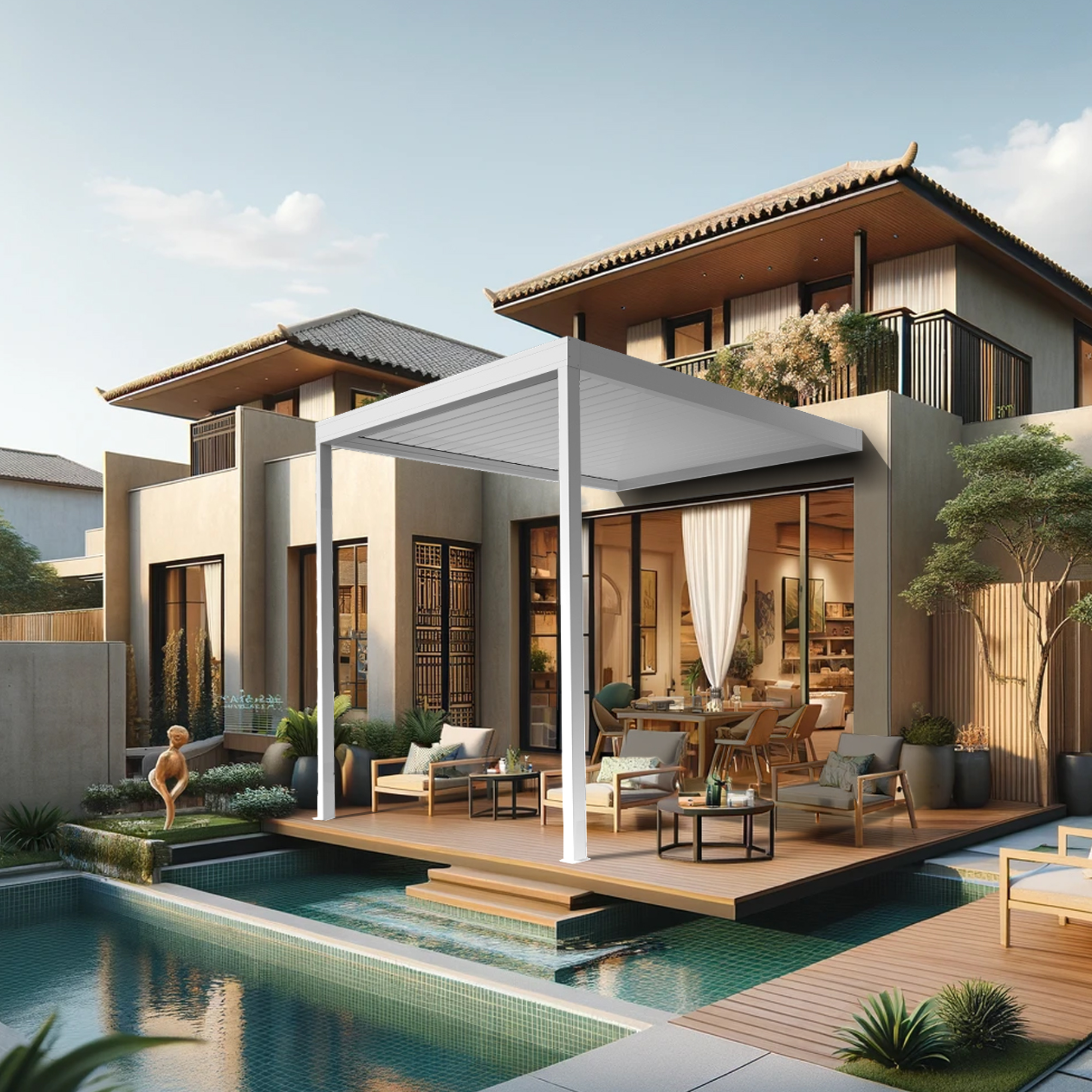 Que ce soit pour créer un coin repas en plein air, un espace détente ou un abri pour votre spa, la pergola bioclimatique DASHURIA s'adapte à tous vos besoins. Son design moderne et épuré s'intègre parfaitement à tous les styles de décoration extérieure, ajoutant une touche d'élégance à votre espace.